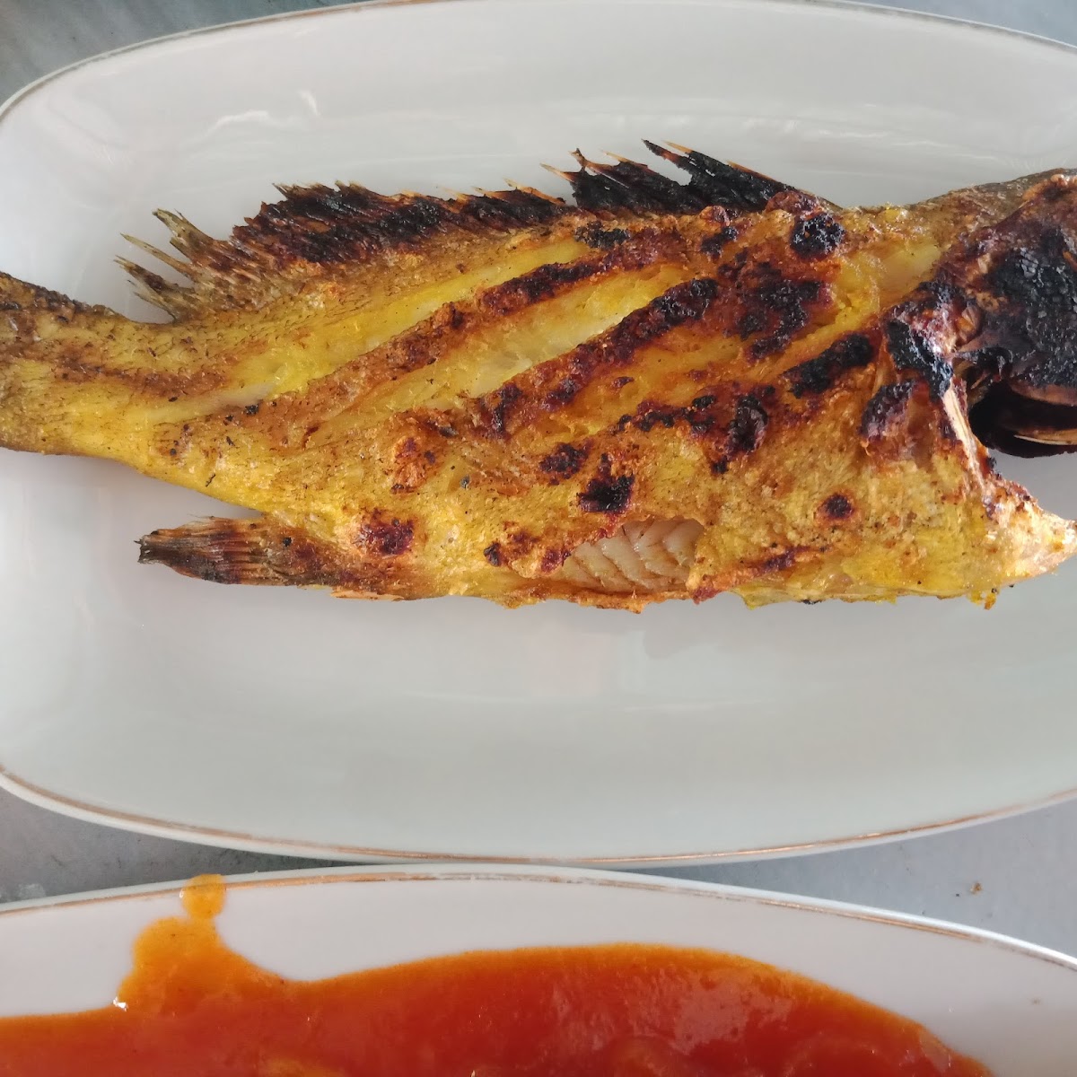 Wonderfully fresh and tasty meal accompanied by an amazing view. Although I have a seafood allergy, this is the first time I have experienced no allergy reactions from eating seafood. Normally, I would have rashes, irritated eyes, nose, and sinuses, but astonishingly, I only had a full stomach and no allergic reaction. None of the meals had a strong smell, and it all tasted really fresh. Although I don't often eat fish, this place's barbecued fish is amazing. There is peace and beauty in plenty with this perspective. The fact that there is some rubbish along the beach is the one thing I didn't like. However, nothing overtly apparent.